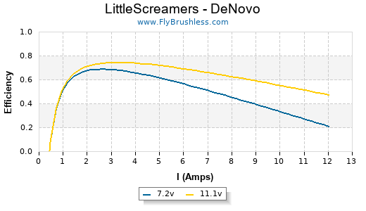 | Propeller | Gear Ratio | Volts | Amps | Watts | RPM | Speed (mph) | Thrust (g) | Thrust (oz) | RPM as % of Kv*V |